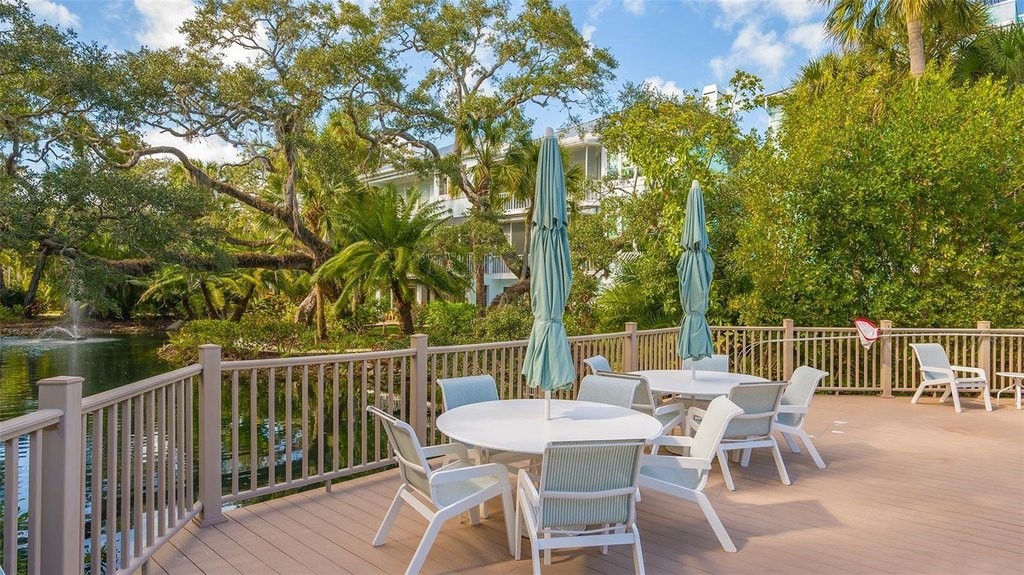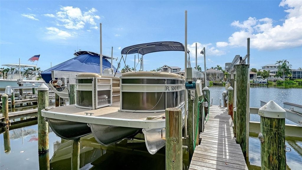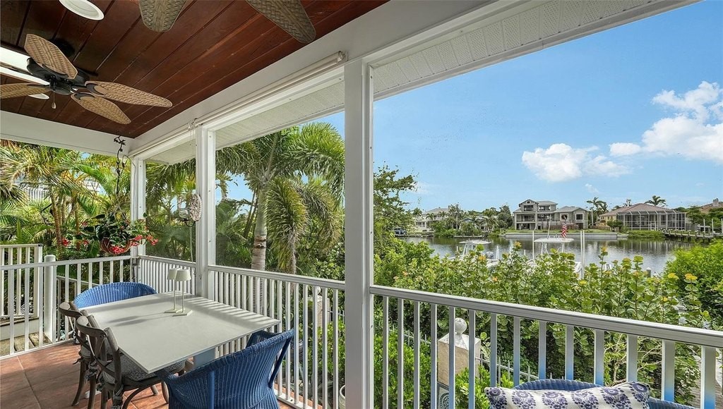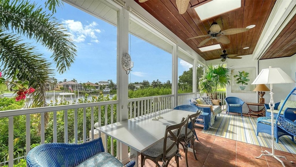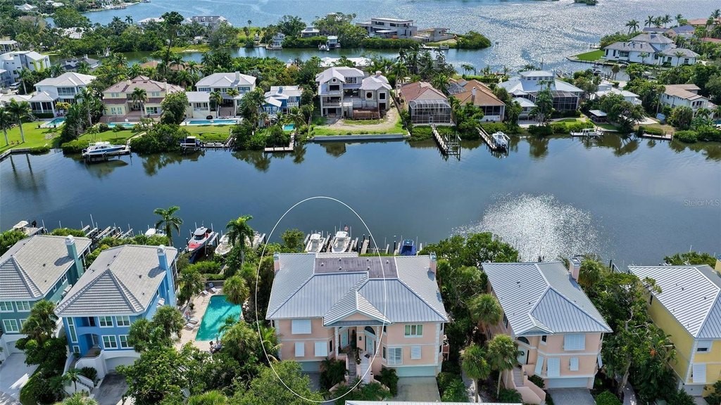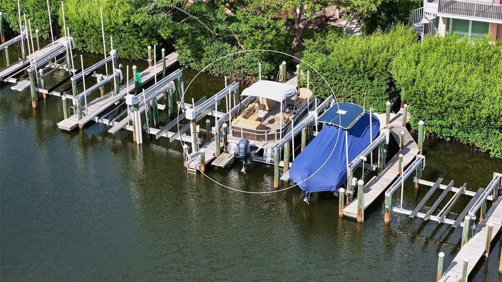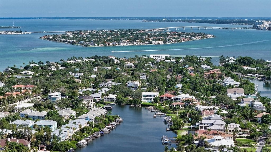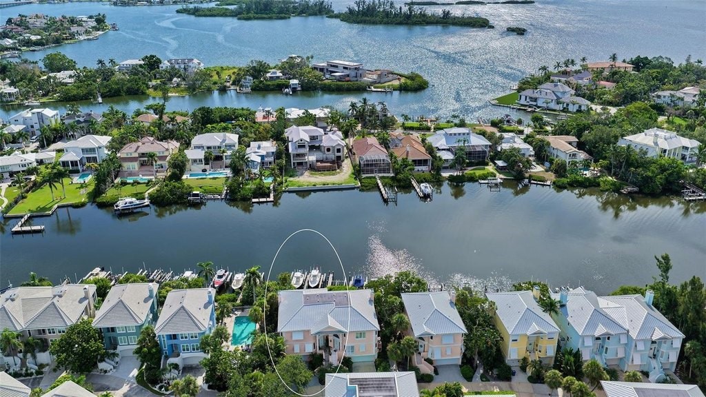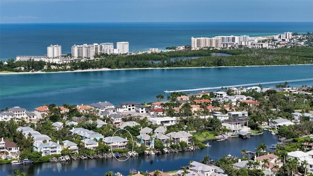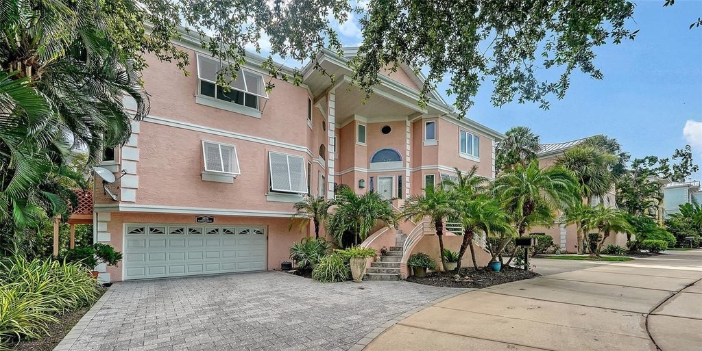Exquisite waterfront townhome in private gated community with architectural detail in the Bermuda tradition. Lush tropical landscaping , dramatic pool area with view of lagoon and fountain and overhanging Oaks. Tennis and Pickleball Court. Deeded deep water protected dock with lift, electric and water at dock provided by the Association. No bridges to the intercoastal. This home has enchanting wide water views of the Bayou from almost every room. Mangroves make this body of water a beautiful environment for fish and other wildlife. A covered balcony overlooking the water is the perfect spot to sit and sip your cocktail. This home has been beautifully renovated with fine finishes and many artistic touches. Open gourmet kitchen witih large center island. Pantry, storage and corner sitting area with window seat. Impact glass windows throughout. Inviting great room with gas fireplace and charming ambiance. Three bedrooms with ensuite baths and large family room. Elevator from garage to second and third floor. Small enclosed yard on ground floor. Walk right out to your boat and enjoy all that Siesta Key has to offer. Located on the North end of Siesta, minutes to Shell Beach, Siesta Village and the famous white sand of Crescent Beach. Minutes by car to downtown Sarasota with endless cultural opportunities and fabulous shopping and restaurants.