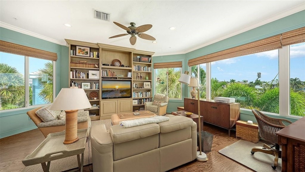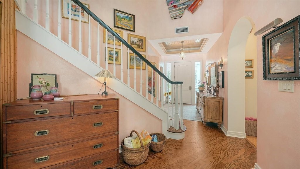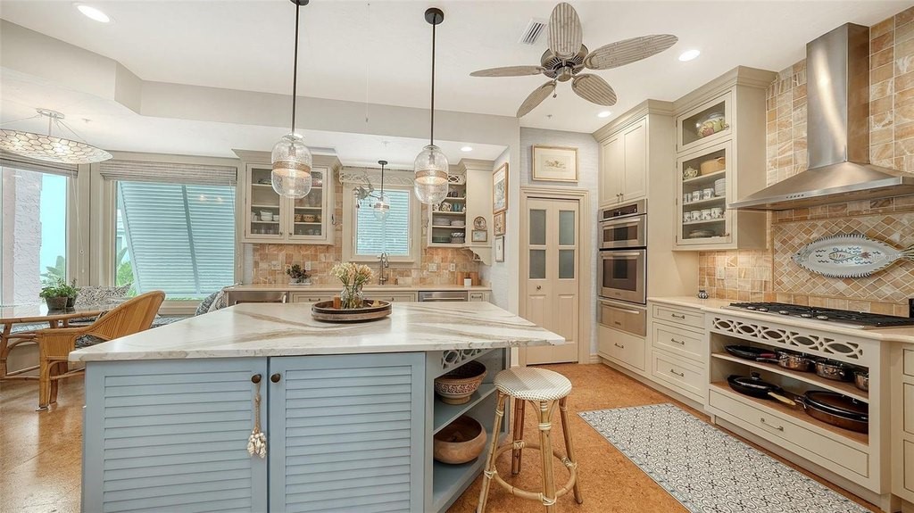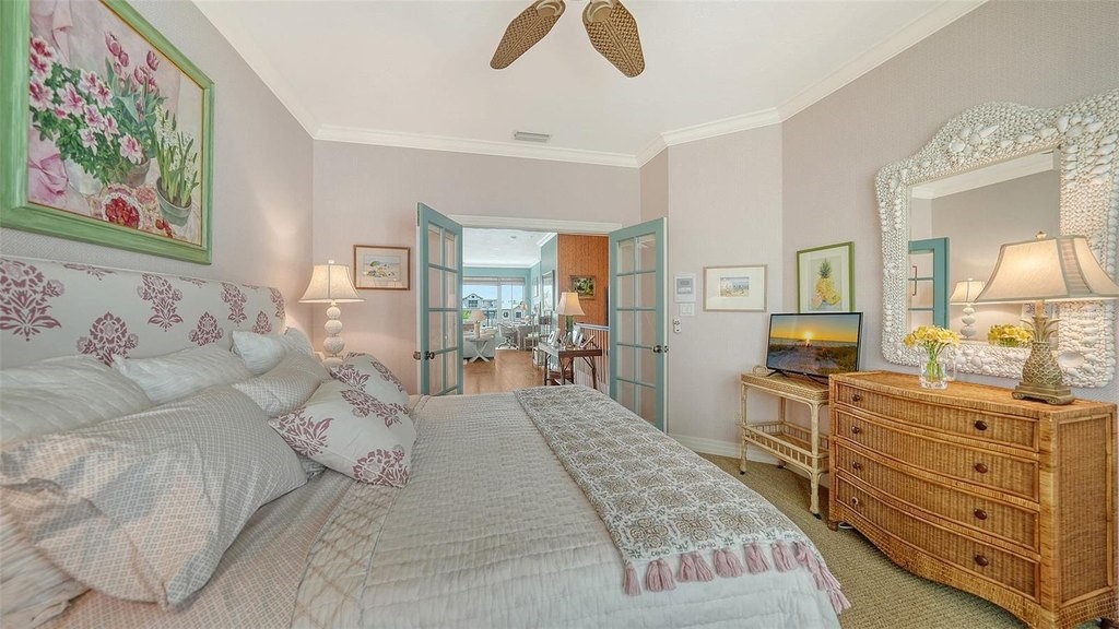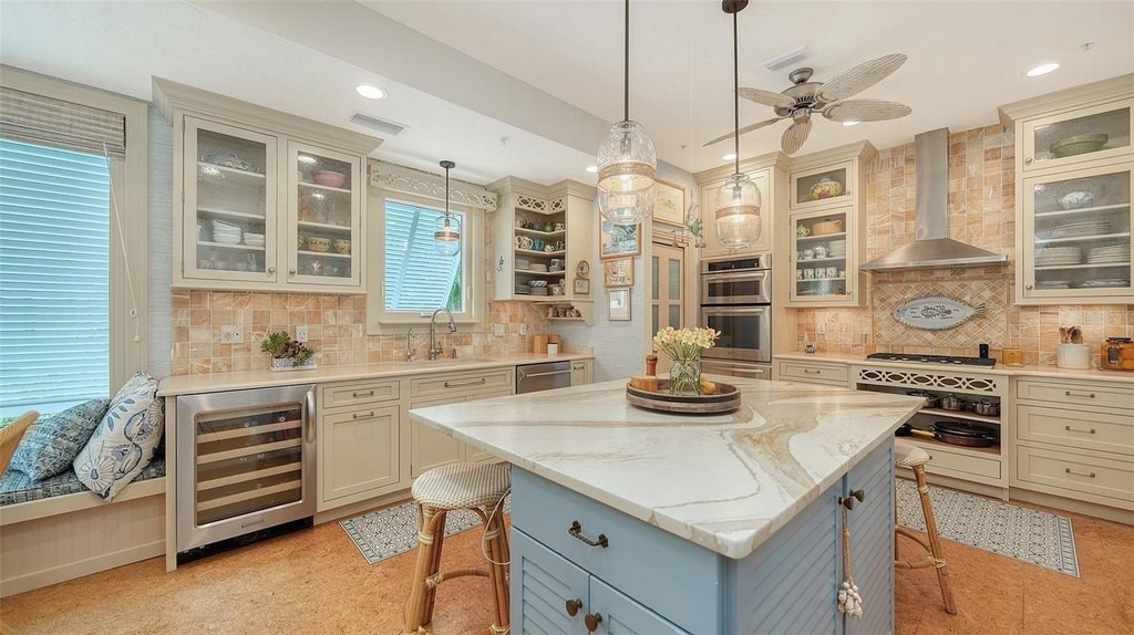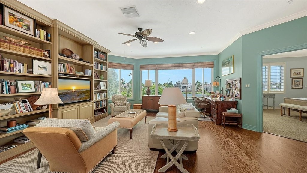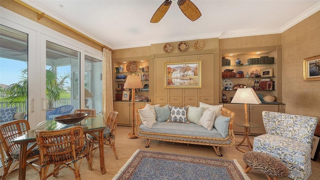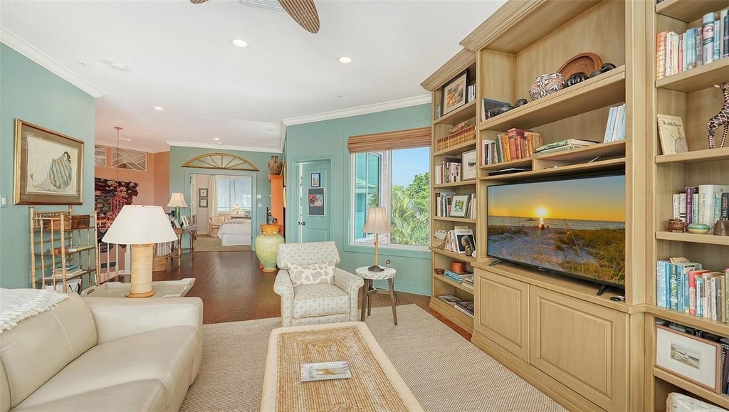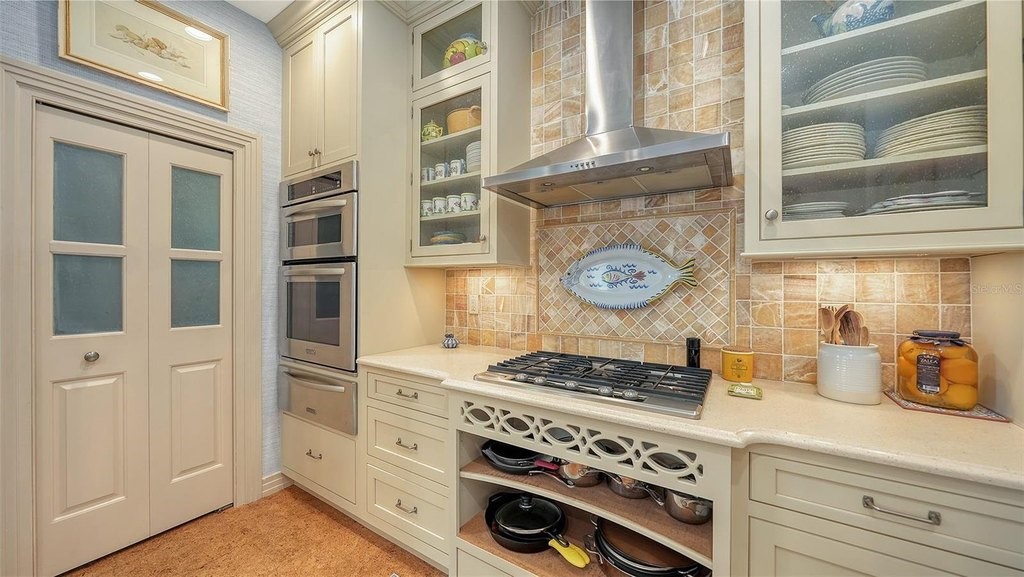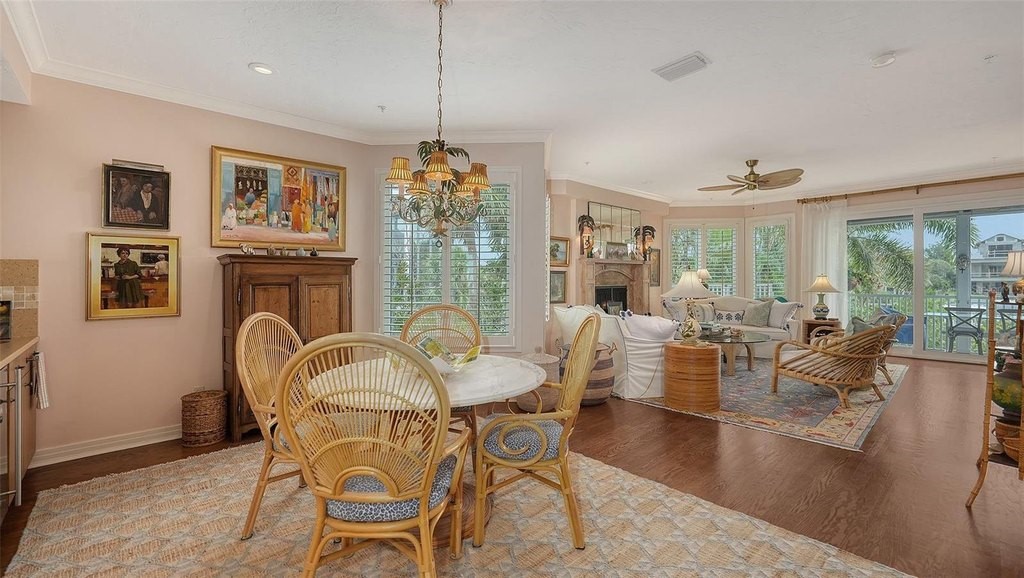 Exquisite waterfront townhome in private gated community with architectural detail in the Bermuda tradition. Lush tropical landscaping , dramatic pool area with view of lagoon and fountain and overhanging Oaks. Tennis and Pickleball Court. Deeded deep water protected dock with lift, electric and water at dock provided by the Association. No bridges to the intercoastal. This home has enchanting wide water views of the Bayou from almost every room. Mangroves make this body of water a beautiful environment for fish and other wildlife. A covered balcony overlooking the water is the perfect spot to sit and sip your cocktail. This home has been beautifully renovated with fine finishes and many artistic touches. Open gourmet kitchen witih large center island. Pantry, storage and corner sitting area with window seat. Impact glass windows throughout. Inviting great room with gas fireplace and charming ambiance. Three bedrooms with ensuite baths and large family room. Elevator from garage to second and third floor. Small enclosed yard on ground floor. Walk right out to your boat and enjoy all that Siesta Key has to offer. Located on the North end of Siesta, minutes to Shell Beach, Siesta Village and the famous white sand of Crescent Beach. Minutes by car to downtown Sarasota with endless cultural opportunities and fabulous shopping and restaurants.